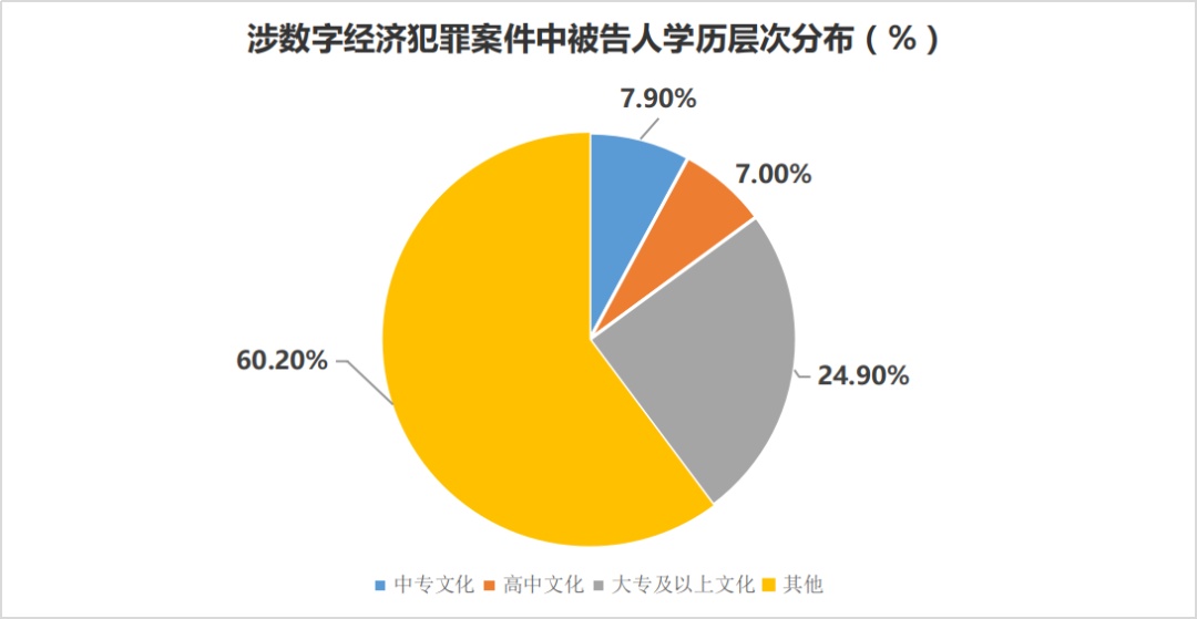 从涉案人员来看,涉数字经济犯罪案件被告人总体呈现年轻化、学历高特点。