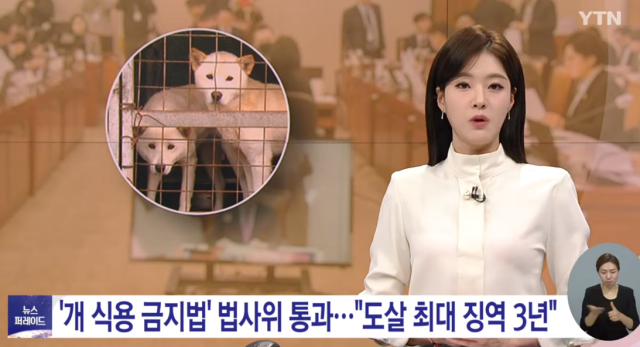 韩媒报道禁食狗肉法案(韩国YTN电视台)