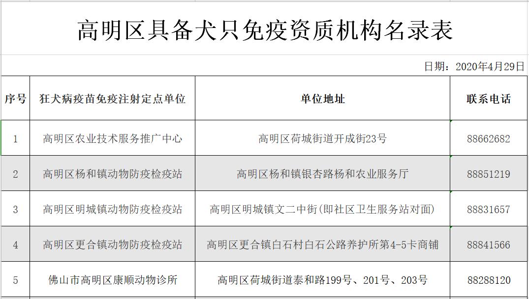 高明9家免费狂犬疫苗注射点: