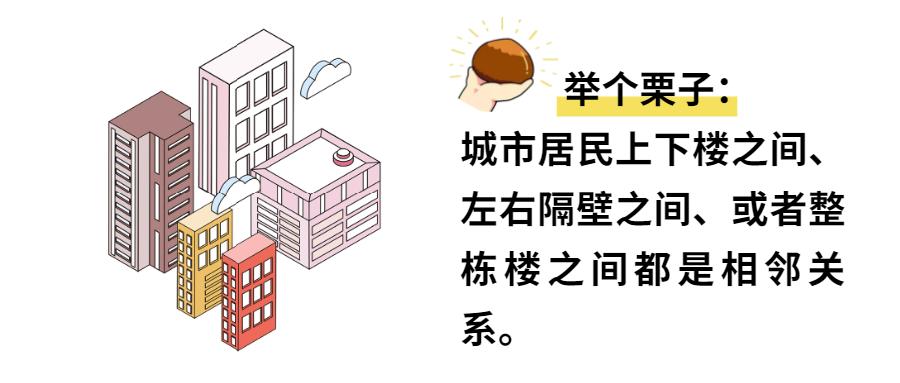 你所说的只是一个狭义说法。其实,相邻关系是指两个或两个以上相互毗邻的不动产的所有人或使用人,在行使不动产的所有权或使用权时,因相邻各方应当给予便利和接受限制而发生的权利义务关系。相邻关系是对所有权的延伸。