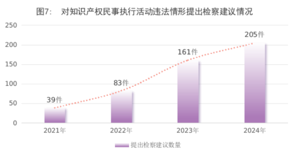 2.民事审判活动、执行活动监督有效开展。对知识产权民事审判活动违法情形提出检察建议223件,法院采纳222件;对民事执行活动违法情形提出检察建议205件,同比上升27.3%,法院采纳201件。