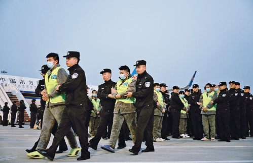 2025年2月20日,缅甸妙瓦底地区的200名中国籍涉诈犯罪嫌疑人,经泰国被我公安机关押解回国。此次行动是中缅泰开展执法合作取得的标志性重大战果,彰显三国联合打击电信网络诈骗等跨国犯罪、维护地区安全稳定的坚定决心。新华社记者 季春鹏/摄