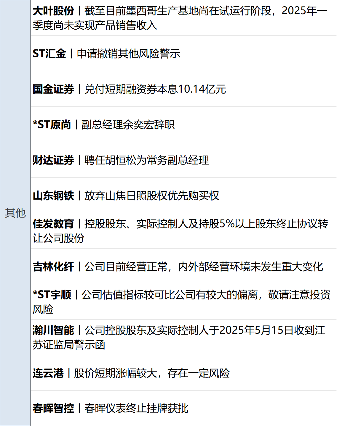5月15日,最高人民法院、证监会联合发布《关于严格公正执法司法 服务保障资本市场高质量发展的指导意见》。意见提到,严格规范证券执行工作,避免绕道减持、违规减持。对于采取司法扣划、划转等非交易过户方式强制执行处于限售期或不得减持的股票,以及当事人已作出限售减持承诺的股票的,人民法院应当在司法拍卖公告中提示受让方遵守证券监管规则关于股票转让的规定;强制执行相关股票后,受让方应继续遵守限售或减持规定。