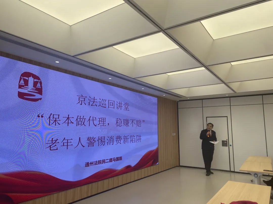 在3.15“国际消费者权益日”来临之际,为积极营造有利于消费升级的法治环境,便于人民群众安心消费、放心消费,切实增强人民群众的安全感、获得感和幸福感,通州法院民二庭副庭长吴可加带领法官助理马国磊、刘斐洁、刘晓静前往文景街道综合文化中心开展“京法巡回讲堂”活动,结合居民们的实际需求,“面对面、心贴心”地开展“订单式”普法。