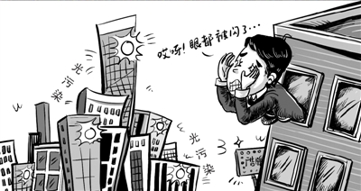 所谓“光污染”是继水污染、大气污染、噪声污染、固体废物污染之后的第五大污染。据了解,过度的光污染,会严重破坏生态环境,且对交通安全也会造成不良影响。由于镜面反射光中包含反射光和折射光,因此镜面建筑物玻璃的反射光比阳光直接照射更强烈,可能使室温升高,如果强光反射在干燥易燃物上,甚至可能会引起火灾。