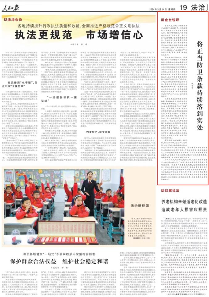 原标题:《【人民日报】将正当防卫条款持续落到实处》