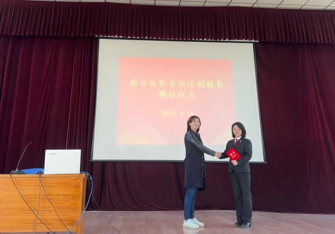 活动当天,天津市南开区职业中等专业学校李莉校长为王娜法官颁发法治副校长聘任书,并表示将不断强化双方合作,共同守护未成年人的健康成长。