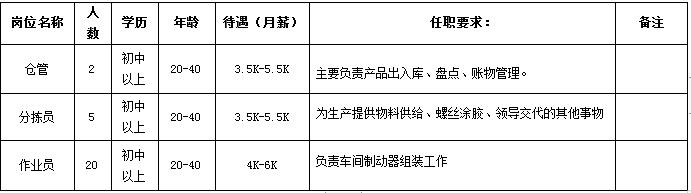 美的集团威灵(芜湖)电机制造有限公司:1999年11月注册成立,位于安徽省芜湖市经济开发区,公司共有2800余名员工,是国内规模较大的电机生产企业,主要产品有汽车电机、空调用电机、抽油烟机电机等。目前威灵电机在电机行业占据着重要位置,对电机行业的发展有着杰出的贡献。现公司旺季来临,且直流电机新项目上线,急需大量人才,待遇从优,发展多多。