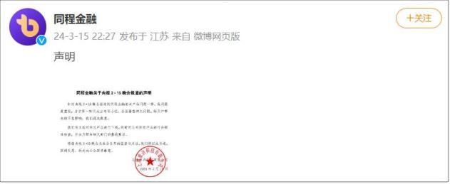 @同程金融 发布道歉声明称