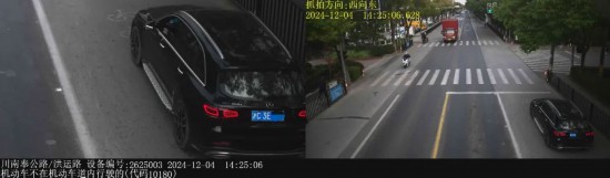 ▲2024年12月4日14时25分,号牌为沪C3E***的小型普通客车在川南奉公路/洪运路,实施了“机动车不在机动车道内行驶的”违法行为。