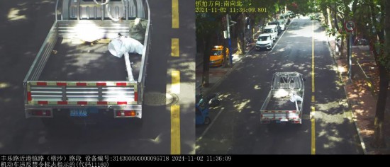 ▲2024年11月2日11时36分,号牌为闽HKG***的轻型栏板货车在丰乐路近港镇路(横沙)路段,实施了“机动车违反禁令标志指示的”违法行为。