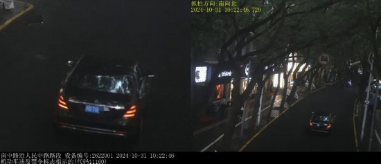▲2024年10月31日10时22分,号牌为沪DTG***的小型轿车在南中路近人民中路路段,实施了“机动车违反禁令标志指示的”违法行为。