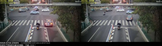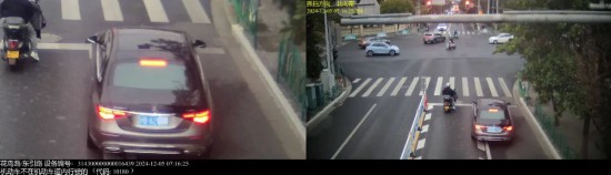 ▲2024年12月1日9时24分,号牌为沪AF83***的小型普通客车在芙蓉江路/新渔东路,实施了“机动车不在机动车道内行驶的”违法行为。