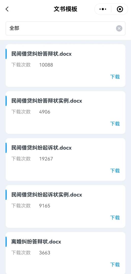 方式一:微信小程序搜索“人民法院在线服务全国版”→点击下方导航栏“服务”→左侧“工具”→点击“民事起诉状答辩状示范文本”,根据纠纷类型选择相应模板进行点击下载。
