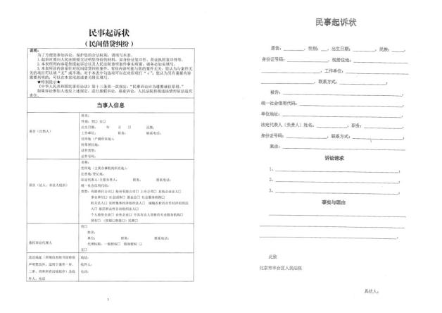 1.在填写时应根据要素式文书提示,围绕诉讼请求,准确、完整地反映出纠纷发生的时间、地点、人物、事实经过、法律依据等内容。