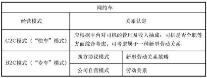 表1 网约车不同经营模式及用工关系认定