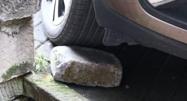 在陡坡处停车时,如果担心车辆停不稳,还有一个方法,可以在车轮下垫上砖头等阻挡物,利用增大摩擦力的方法防止车辆意外溜车。