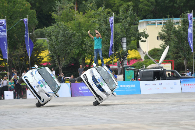 做为整场特技表演的领军人物,“挑战者汽车特技俱乐部”队长加强已经是第三次参加环青海湖电动汽车挑战赛,他谈到今天所做的特技项目,飘移甩尾、两轮行驶都是比较经典的项目,也非常考验车辆的稳定性。第一次参加环青海湖电动汽车挑战赛的时候,还曾担心过电动汽车整体偏重不好操作,但是实际驾驶下来非常容易上手,表演效果也都很不错。“挑战者汽车特技俱乐部”成立于2012年,每个队员都有上千场的表演经验。