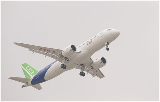 2017年5月5日14时许,我国首款国际主流水准的国产大型客机C919,在上海浦东国际机场首飞。