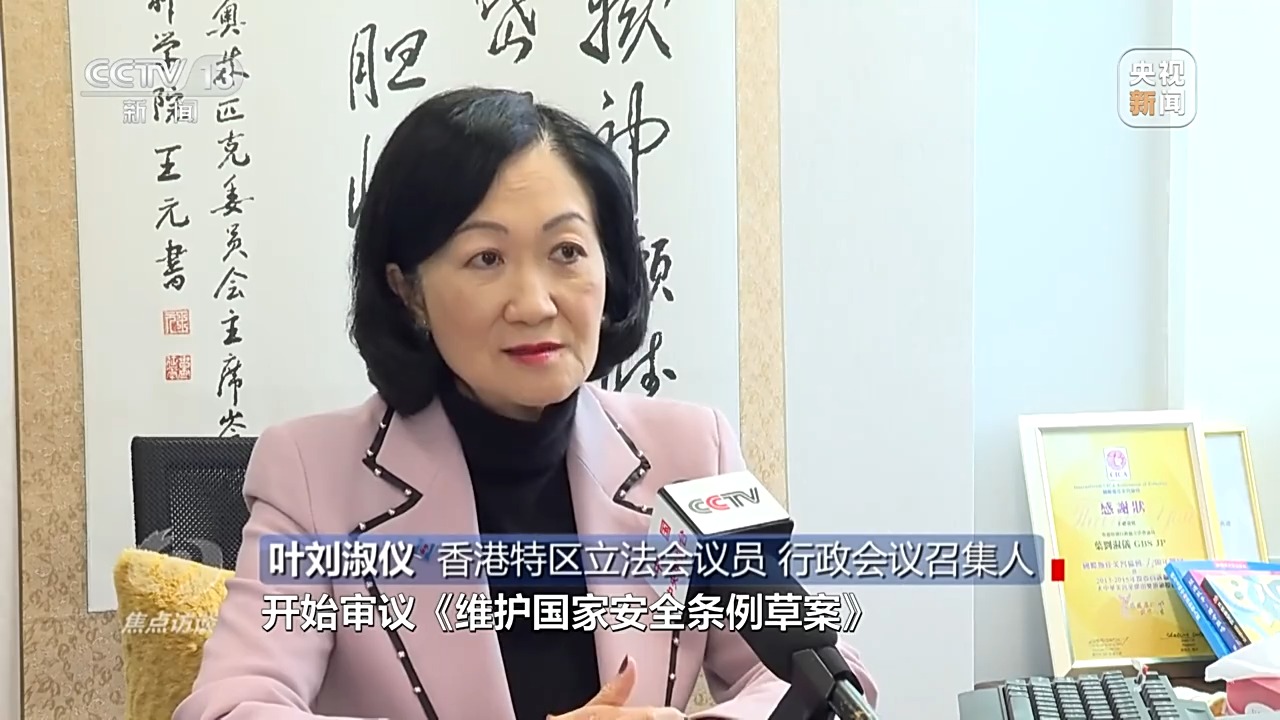 香港特区立法会议员、行政会议召集人 叶刘淑仪:3月8日下午,开始审议《维护国家安全条例草案》,一连7天,每天都超过8个小时。15位委员提出了超过1000条的问题,有些是有关条文的内容,有些是代表市民来提问。政府都非常认真虚心听我们的意见,接受了我们不少修订的建议。