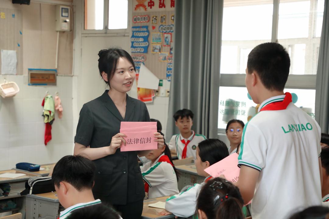 “拆信封居然能学法律?”刑庭干警带着精心准备的“法律信封”走进兰江小学,每个信封里都装着一个与同学日常生活息息相关的法律关键词。