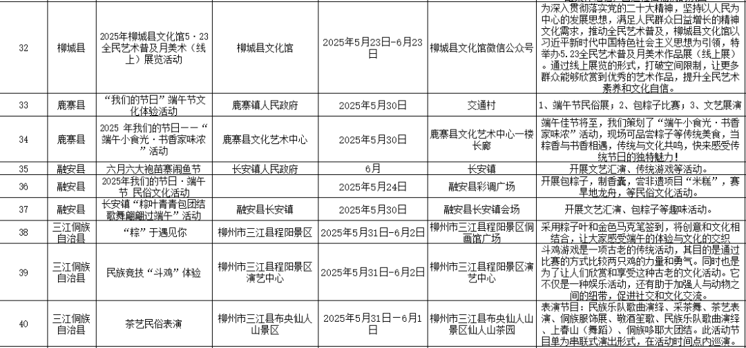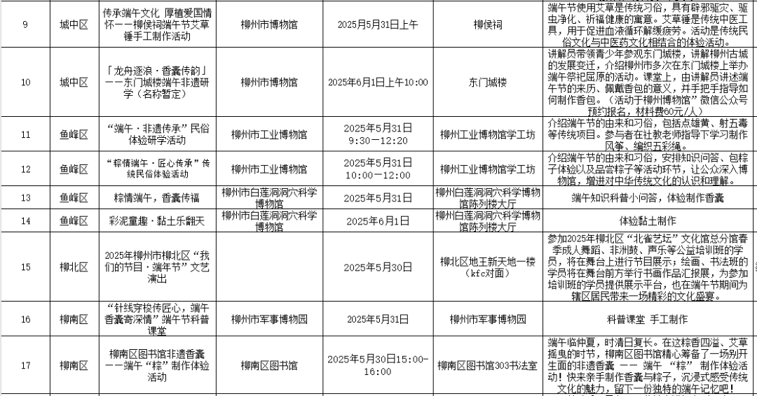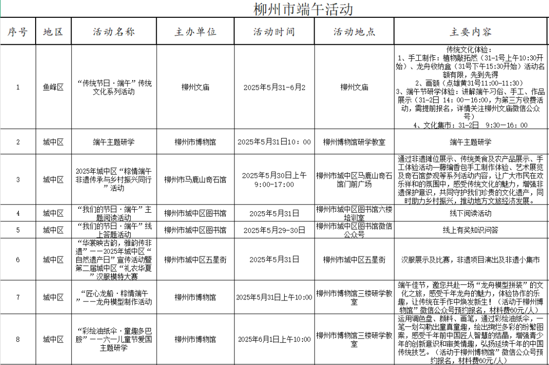 融安县将开展包粽子、制香囊、尝非遗项目“米糕”以及赛旱地龙舟等民俗文化活动。