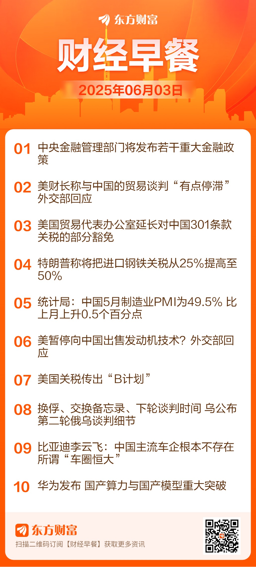 3、中国基金报:美国贸易代表办公室宣布,延长对中国在技术转让、知识产权和创新方面的行为、政策与做法所进行的301条款调查中部分产品的关税豁免。这些豁免原定于2025年5月31日到期,现已延长至2025年8月31日。