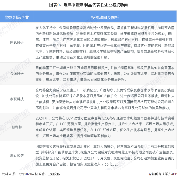 5、中国主要塑料制品企业最新投资:积极开拓市场和提升生产能力