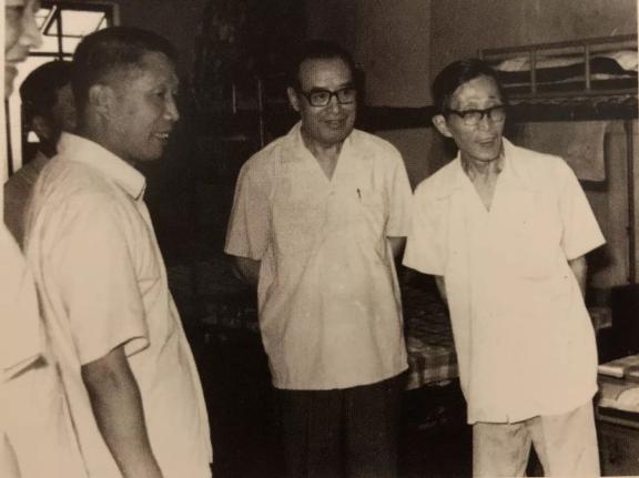 1982年韩德培先生、马克昌先生、何华辉先生(右一)参观武汉市司法局的监狱改造农场