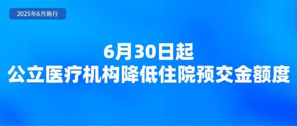 国家卫生健康委等6部门联合印发《关于规范公立医疗机构预交金管理工作的通知》,要求公立医疗机构自2025年3月31日起全面停止收取门诊预交金,自2025年6月30日起降低住院预交金额度。通知要求,公立医疗机构要参考住院患者同病种前3年度实际发生的次均住院费用和个人自付费用,合理确定住院预交金额度,医保患者住院预交金额度降至同病种同保障类别个人自付平均水平。