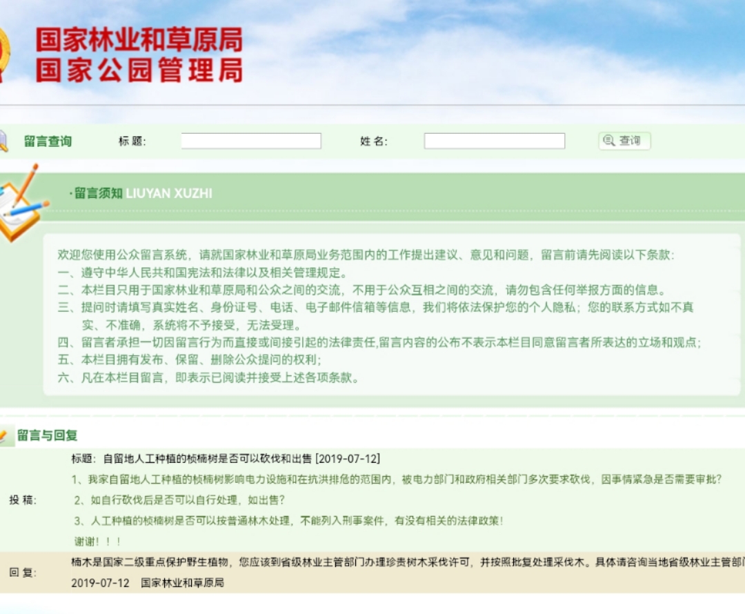 国家林草局于2019年7月回复“自留地人工种植的桢楠树是否可以砍伐和出售 ”时也提醒,楠木是国家二级重点保护野生植物,应该到省级林业主管部门办理珍贵树木采伐许可,并按照批复处理采伐。