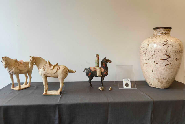 8月24日,瑞士向中国移交的文物艺术品包括:1件磁州窑系白地黑花罐(明代)、1件彩绘骑马陶俑(汉代)、1对白陶鞍马(唐代)和1枚古钱币(元代)。 图片来自中国驻瑞士大使馆