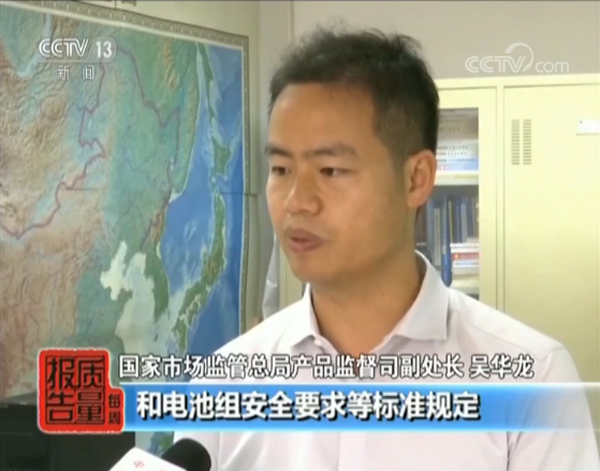 国家市场监督管理总局产品监督司副处长 吴华龙:因为目前没有专门的电动滑板车产品标准,因此,我们主要参照现行国家标准《电动自行车通用技术条件》、《便携式电子产品用锂离子电池和电池组安全要求》等规定,对整车、电池、充电器三大部分进行了监测。