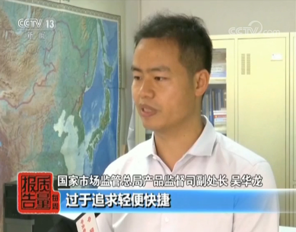 国家市场监督管理总局产品监督司副处长 吴华龙:督促企业严格执行《产品质量法》、《消费者权益保护法》等法律法规,切实履行质量安全主体责任,特别是新产品投放前要加强质量安全评估,确保提供的产品符合保障人身、财产安全的要求。