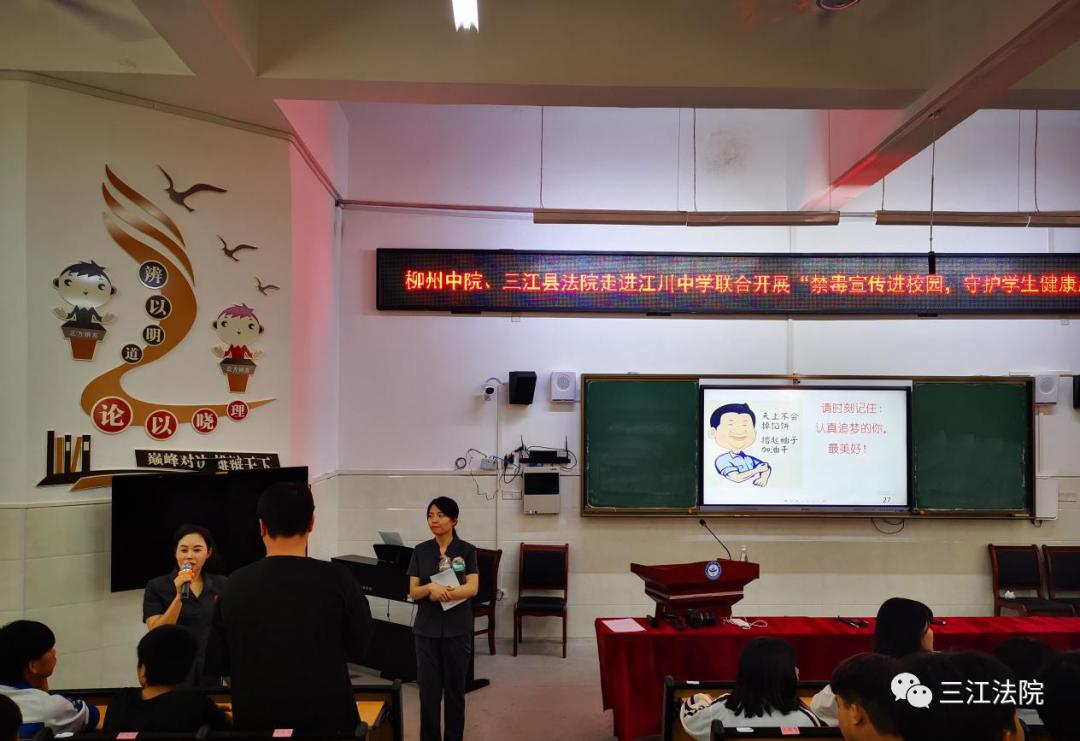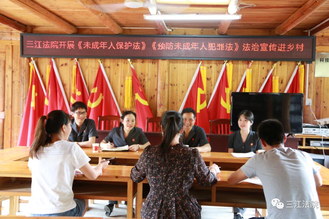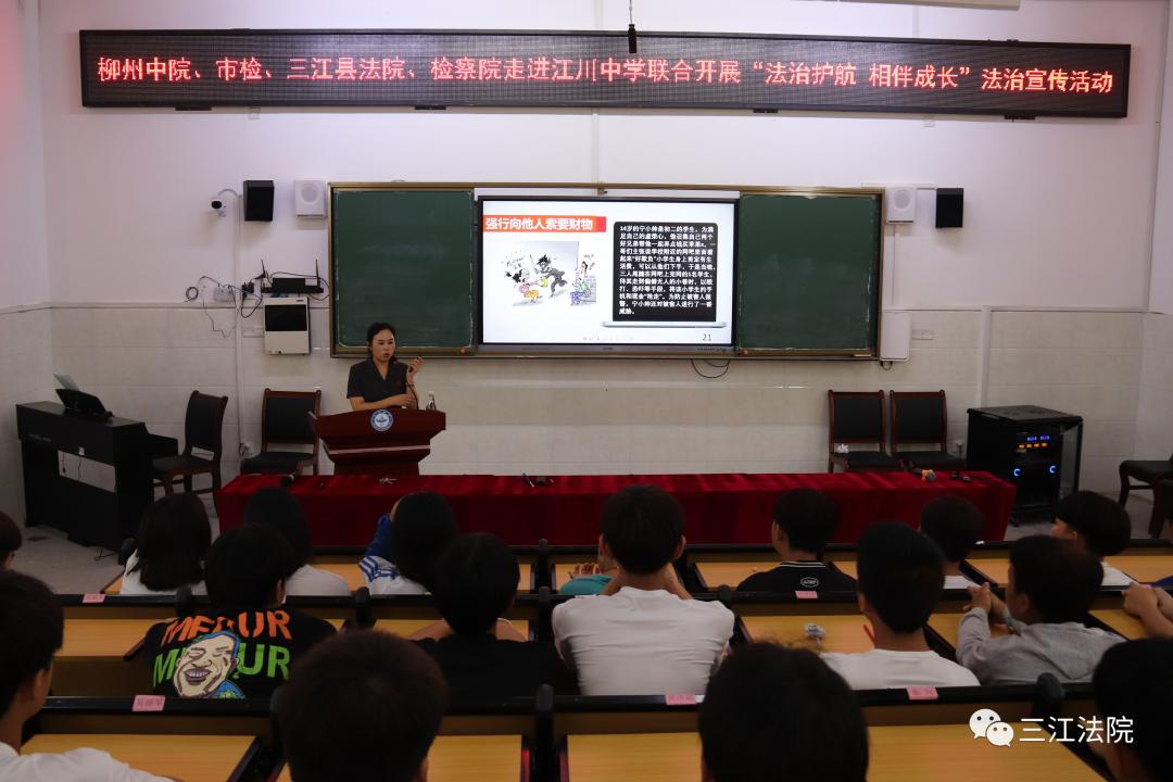 2021年6月9日柳州市中院、市检察院、三江法院、三江检察院围绕“我为群众办事实”实践活动,走进江川中学、江川小学联合开展“法治护航 相伴成长”为主题的未成年人 保护法宣传月活动,广泛开展保护未成年人合法权益的普法活动。