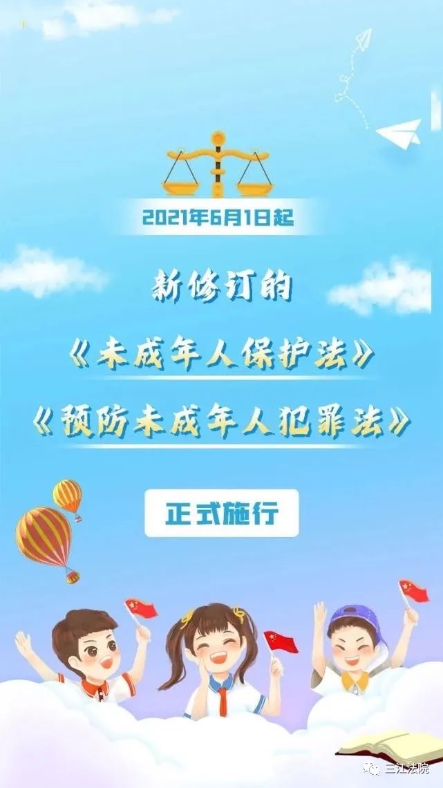 6.1起, 新修订的《未成年人保护法》《预防未成年人犯罪法》正式实施。