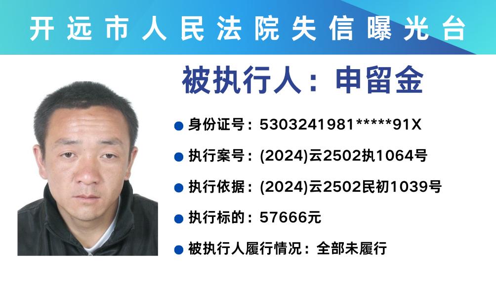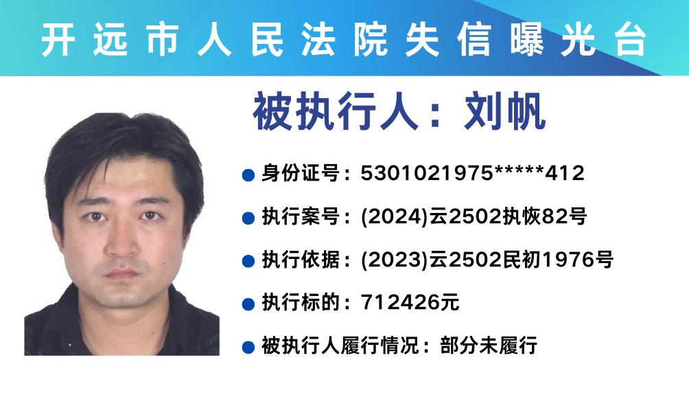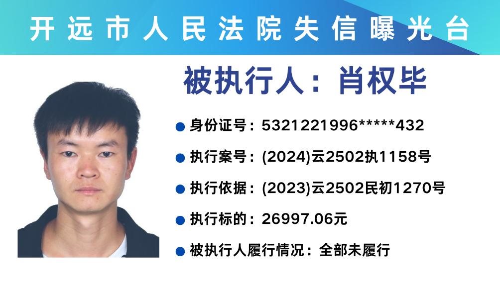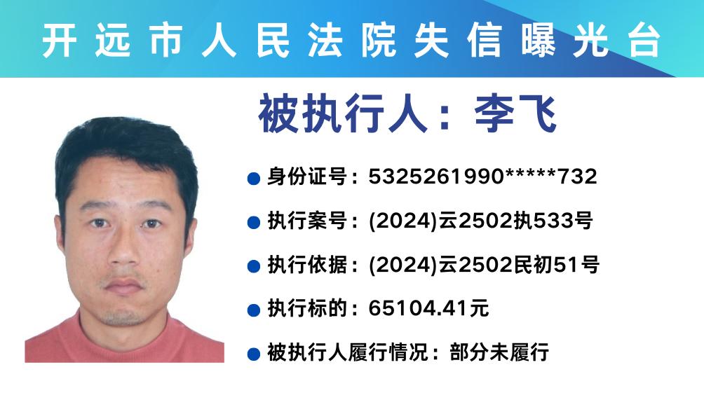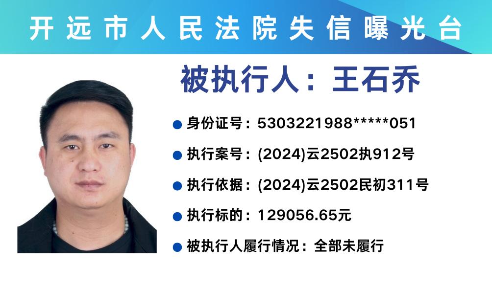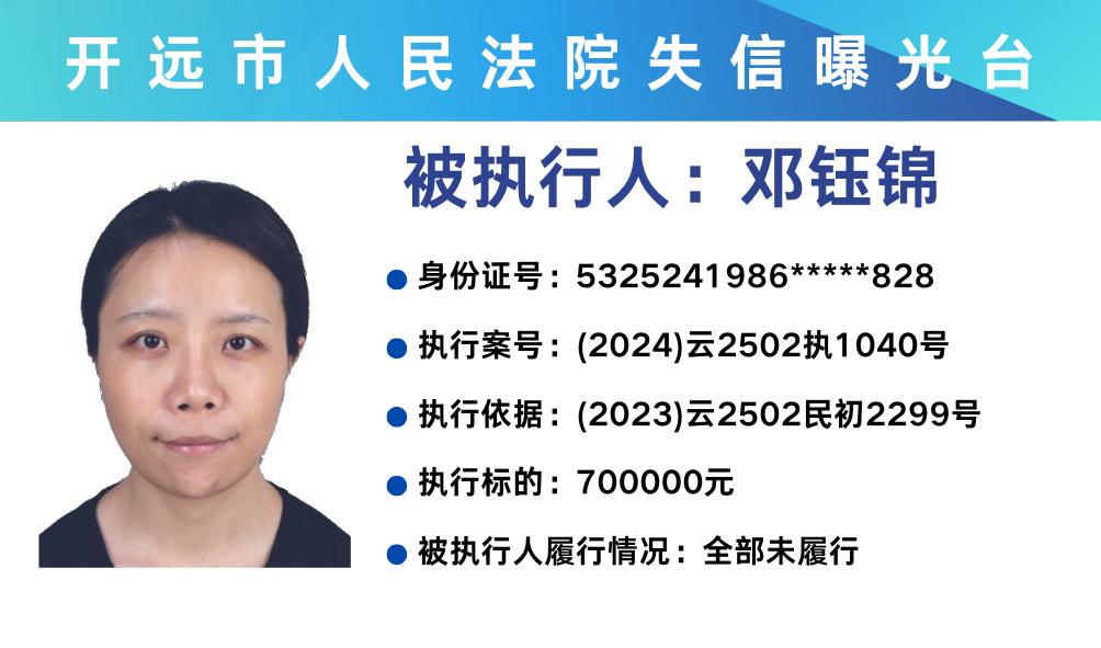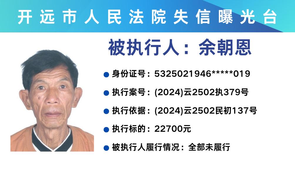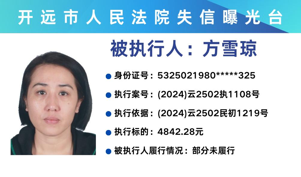 原标题:《失信曝光台 | 开远法院2025年第三期失信被执行人名单》