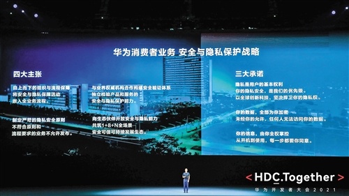 华为开发者大会2021(Together)10月22日在东莞松山湖正式开幕。大会上,华为消费者业务发布了网络安全与隐私保护“四大主张”和“三大承诺”,以此来共建安全可信的数字世界。华为消费者业务首席运营官何刚提到:“今天,在广大开发者和伙伴们的共同努力下,基于HarmonyOS的全新生态已初步成型,一个繁荣的鸿蒙生态距离我们并不遥远。”