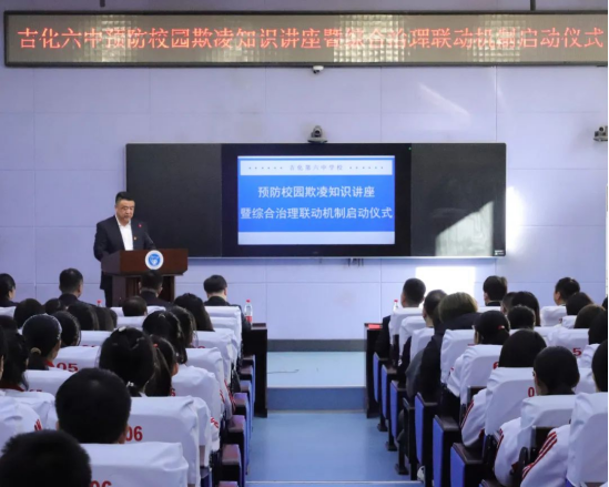 为进一步加强未成年人法治教育,切实履行法治副校长职责,龙潭区人民检察院、吉林市中级人民法院、龙潭区龙华派出所联手走进辖区内吉化六中举行预防校园欺凌知识讲座暨综合治理联动机制启动仪式。据悉,此次活动是今年以来公检法首次同堂,致力于形成未成年人保护工作合力,打造龙潭区特色法治教育,促进未成年健康成长。