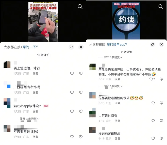 记者同时注意到,在多个有关“网约摩的”的讨论帖下,不少网友质疑:“谁敢坐”“没保险,随意违章没法处罚,没年检,出事找谁”“安全吗”……