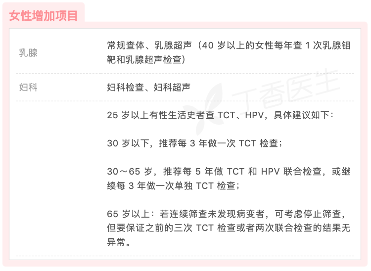 简单方便,只要根据自己的性别和年龄段,动动手指点击进去,马上就能知道自己该做哪些检查了。