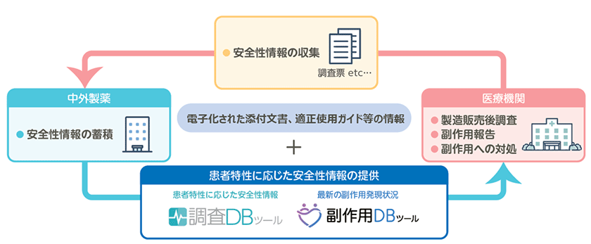 このような想いから、当社は「副作用データベースツール(以降、DBツール)」を2016年にリリースし、医療関係者の皆様からご報告いただいた当社の医薬品に関する安全性情報(副作用情報)を、タイムリーに医療機関に還元してきました。