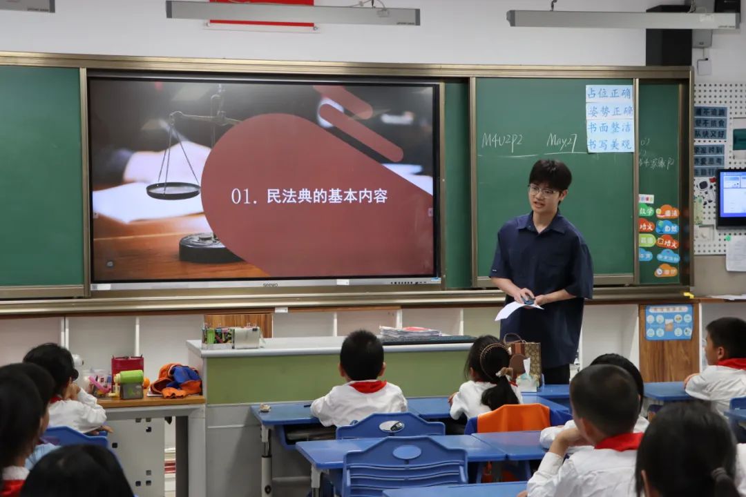 5月27日下午,上海海洋大学法务办老师携法学研习社成员,共同前往上海浦东新区明珠临港小学开展“小法芽,大未来”《民法典》主题宣讲活动,为该校学生带来一场生动且实用的法治教育课程。