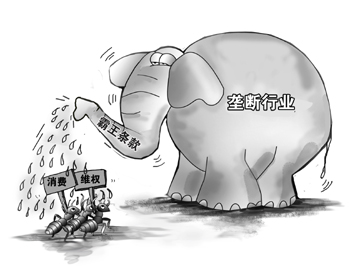 此外,应破除一些行业的垄断行为,让霸王条款在竞争中自生自灭。相关专家认为,需要引入充分的市场竞争,从而让垄断企业丢掉依靠垄断地位占领市场的依赖思想,回归到以服务争取客户的市场本质。只有充分的竞争,给消费者更多的选择权,才能从根本上清除滋生“霸王条款”的土壤。