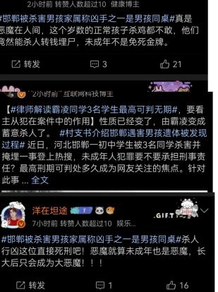 近日,河北邯郸三名初中生残忍杀害同学的案件引发网友热议。