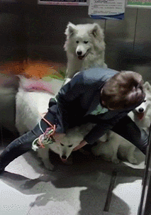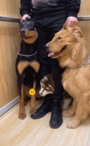 多狗家庭的主人坐电梯恨不得自己是一只八爪鱼。