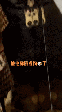 电梯上人很多,发现有只狗头被主人狠狠挤在角落...