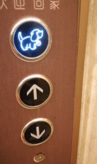如果要带狗狗坐电梯,就按亮上面狗狗图标的按钮。每一层电梯厅就会提示有狗狗在电梯里。