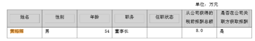 黄裕辉2024年从上市公司获取的薪酬为8万元,但他同时在公司关联方获取报酬。
