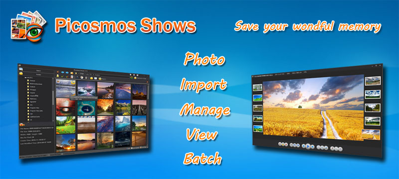 "Picosmos Shows" is a kind of software which can support image viewing and managing in all formats. It can support importing and storing pictures in mobile devices to share your wonderful memories with your loved families and possess a variety of functions of image batch processing, such as watermark, converting, resizing, image compression and optimization.